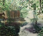 2016Mijn veilige haven in mijn jeugd, was een vijvertje in het bos. Ik fantaseerde er op los aan de waterkant. Zo ook dat het bos ademt via het wateroppervlak waarin de lucht is weerspiegeld.